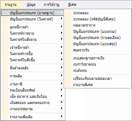 - หมวดหมู่บัญชี : เป็นข้อกำหนดรายงานที่สามารถเรียกดูเป็นหมวดหมู่บัญชีได